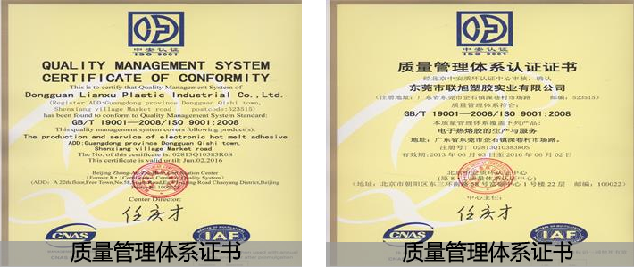公司通過ISO9001-2008質量管理體系認證 公司産品合符ROHS、REACH、美國安規(UL94V-0)認證。